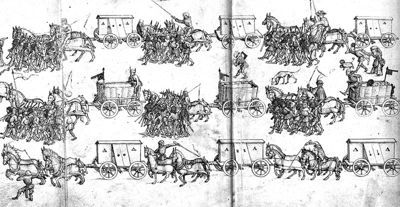 that they may be used in the wagon-fort defensive formation.
