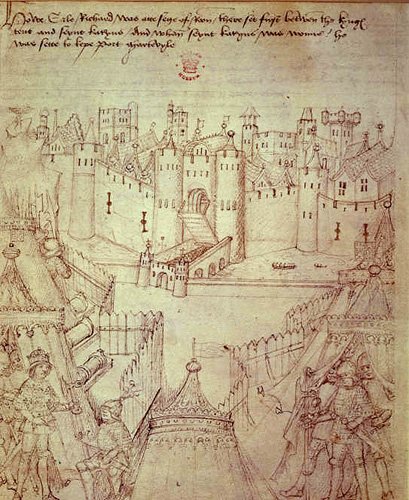 behind the gate, past the first line of wagons, is the Wachtmeister