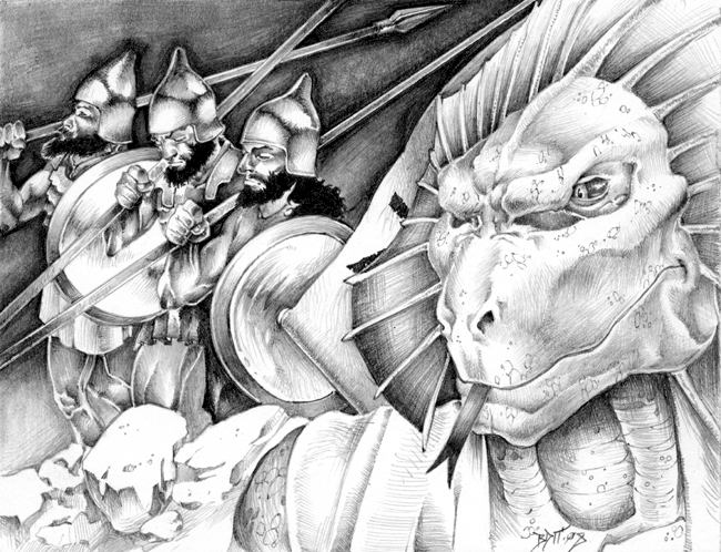 "Hoplites and Dragonewt" Pencil. 2009 |