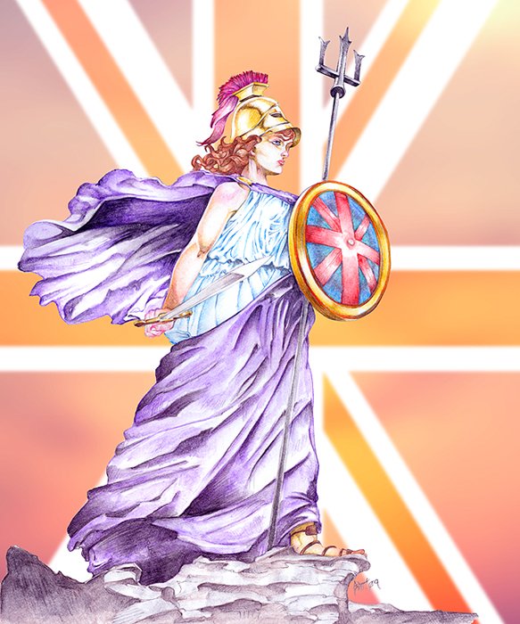 "Lady Brittania" Color Pencil and Watercolor. 2009 Commissioned by GAMA for the Origins convention, this piece represented that years theme of "Brittania" |