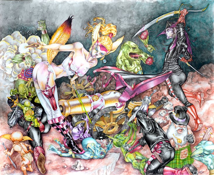 "Vierra and the Bladeslinger" watercolor pencils and wash. 2009 Debuted at GenCon Indy in 2009. |